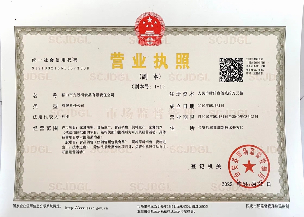 1997年丨九股河誕生于遼寧臺安,成立臺安縣九股河農業(yè)發(fā)展有限公司2003年丨九股河走進錦州市,在凌海成立凌海九股河食品有限公司2008年丨成立凌海九股河飼料有限公司2010年丨九股河與禾豐合作后,成立鞍山市九股河食品有限責任公司,從此,禾豐九股河走進了高速發(fā)展之路2011年丨繼續(xù)在遼西闊步,成立葫蘆島九股河食品有限公司同年,臺安縣九股河農業(yè)發(fā)展有限公司養(yǎng)殖部成立,按下規(guī)模化籠養(yǎng)小區(qū)建設的快進鍵2